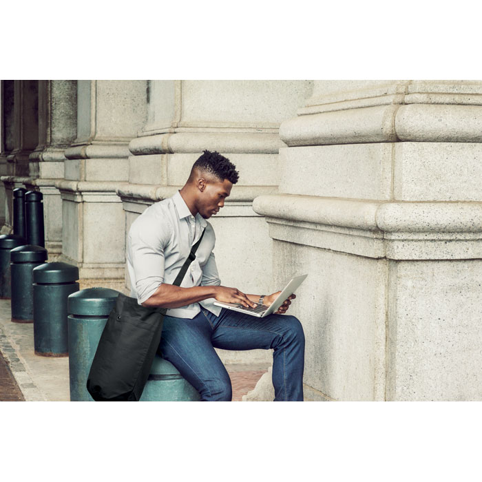 Canvas bag with long adjustable cross shoulder strap and large front pocket with snap closure. Includes inner pocket. 270 gr/m².